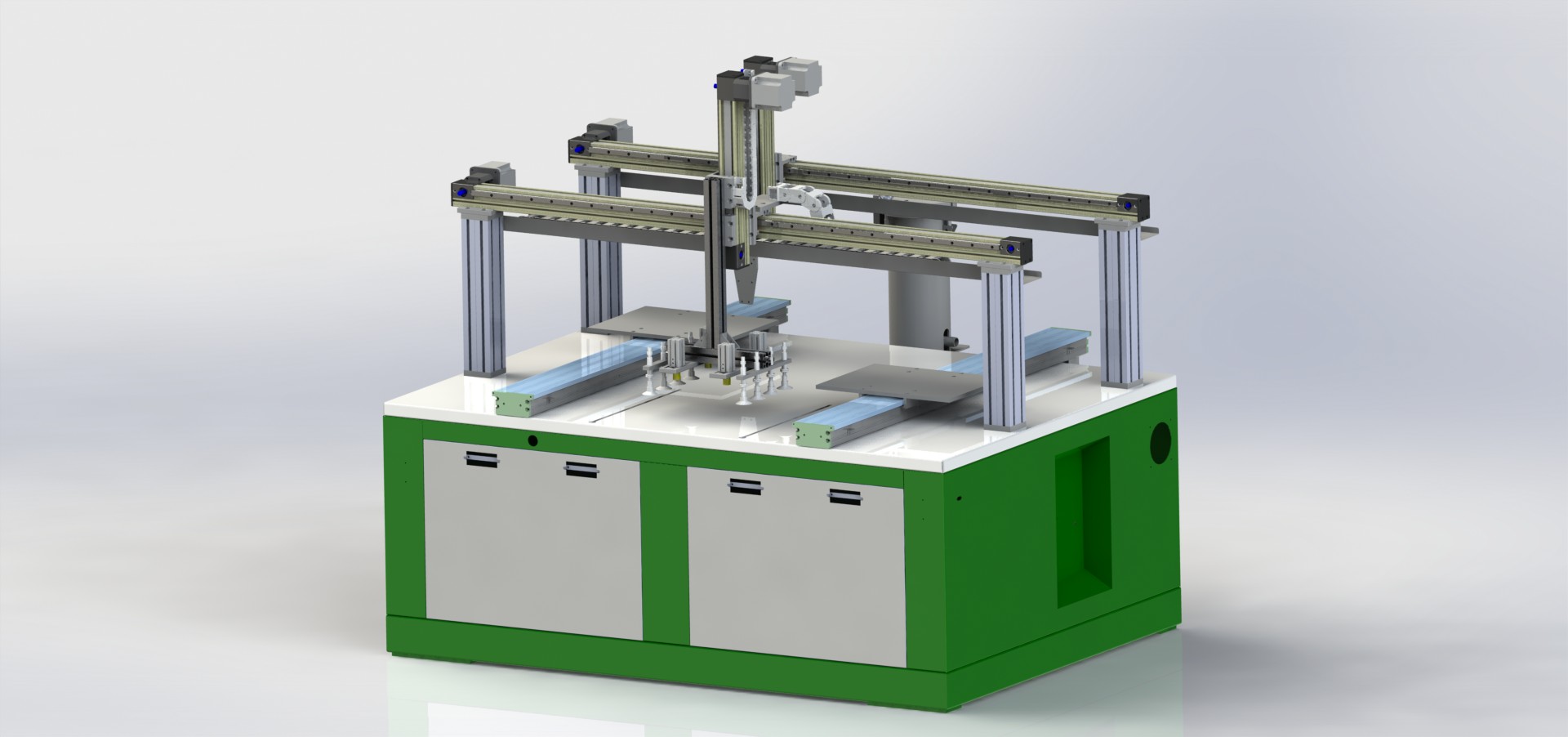 蘑菇视频黄片投光灯自动打胶粘玻璃面板一体机是为实现投光灯打胶和粘玻璃自动化而研发设计的,其主要目的是解决打完胶之后,人工铺放玻璃时出现用力不均,导致胶水溢出或者弄脏玻璃面板的情况,操作相对来说也不是特别方便,所以有些工厂对自动盖玻璃面板的机器也有需求